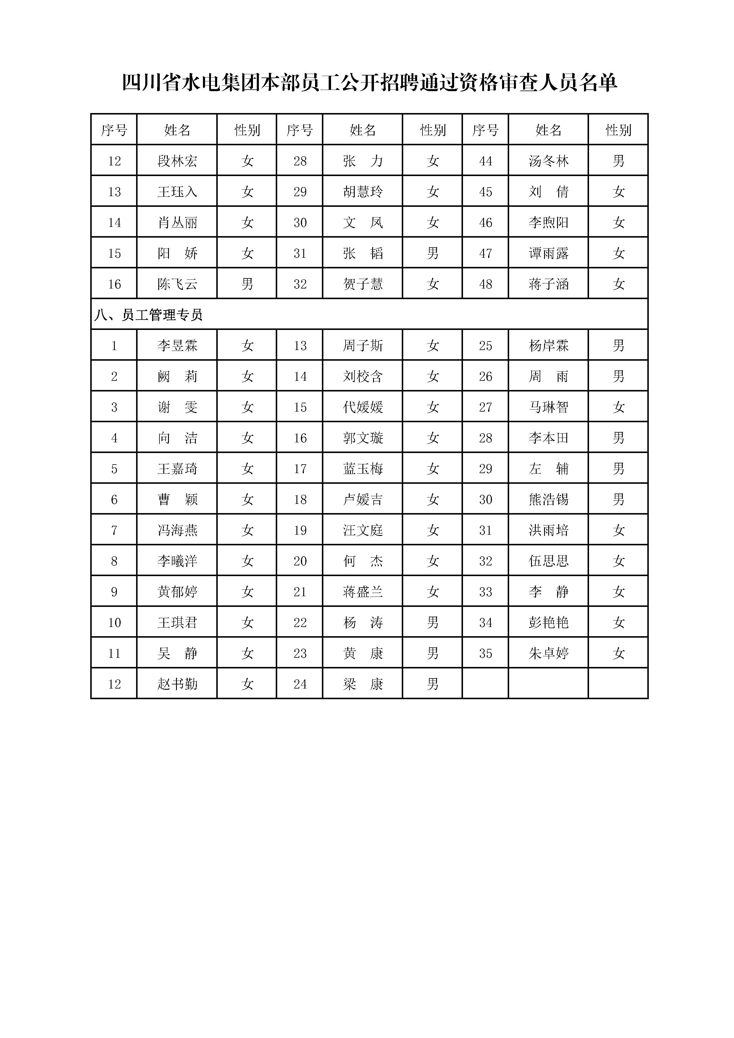 四川省水電集團本部員工公開招聘通過資格審查人員名單公示