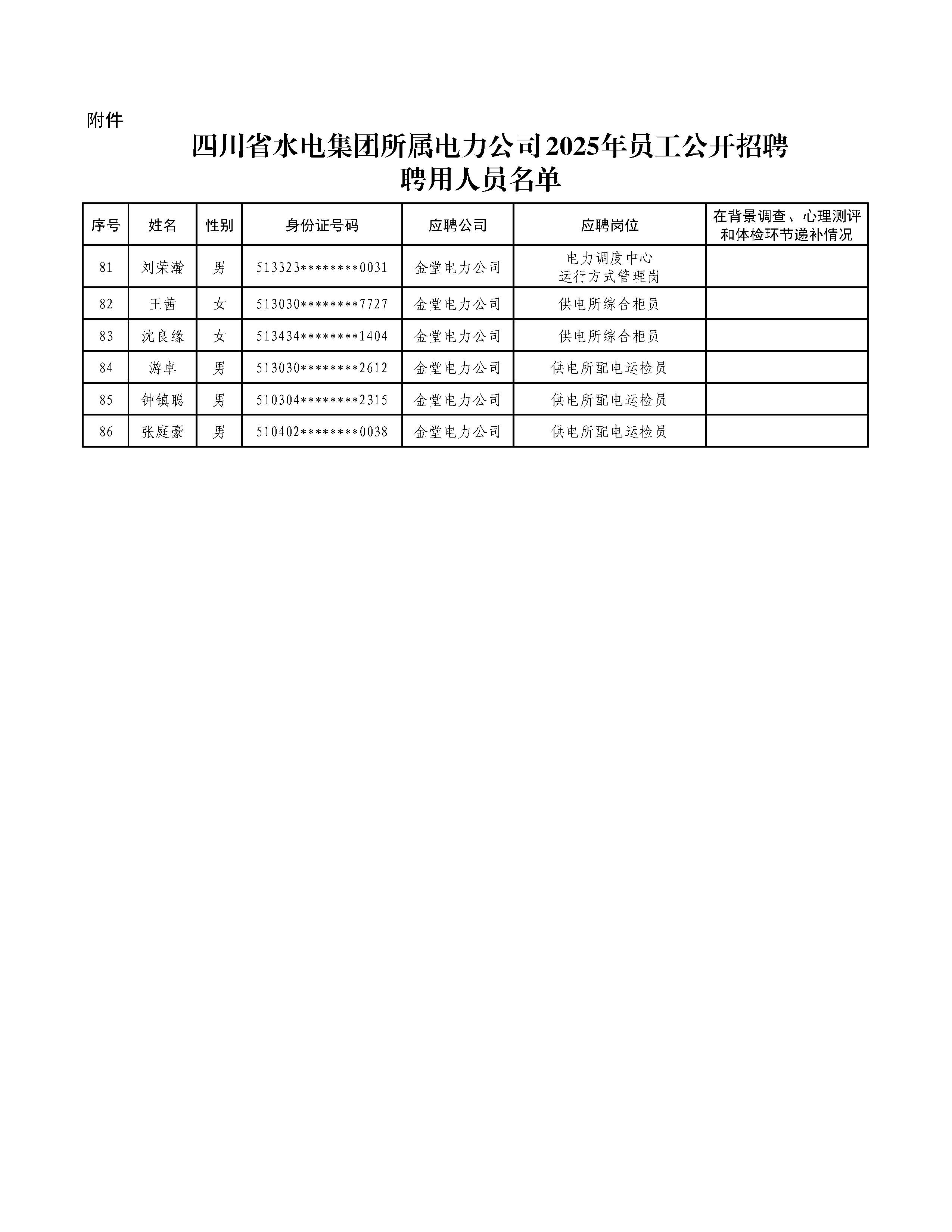 附件:四川省水電集團所屬電力公司2025年員工公開招聘聘用人員名單